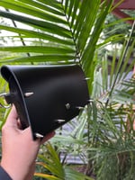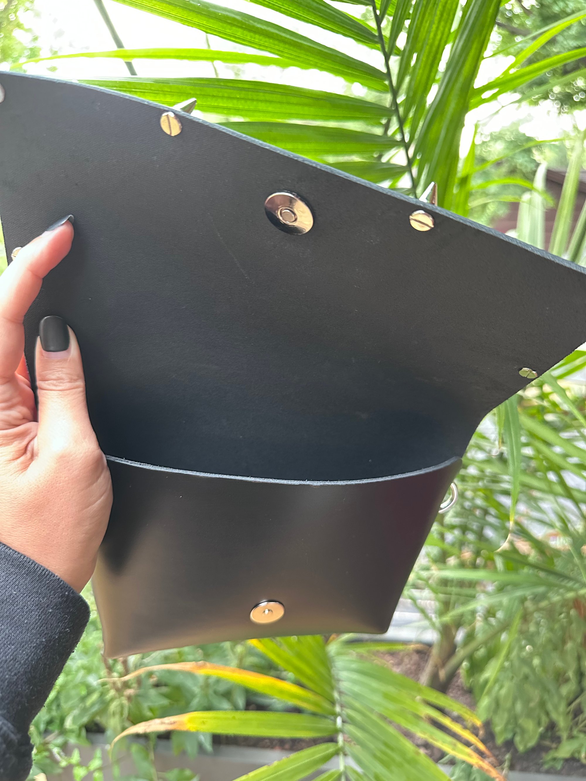 This crossbody bag is the perfect accessory for everyday wear or a night out. The oversized flap adds an element of gothic couture and clasps together with a magnetic snap. Made from premium, full-grain leather that is hot stuffed with oil and waxes for a beautiful finish. Hand cut and stitched for premium quality and original pattern made in house.