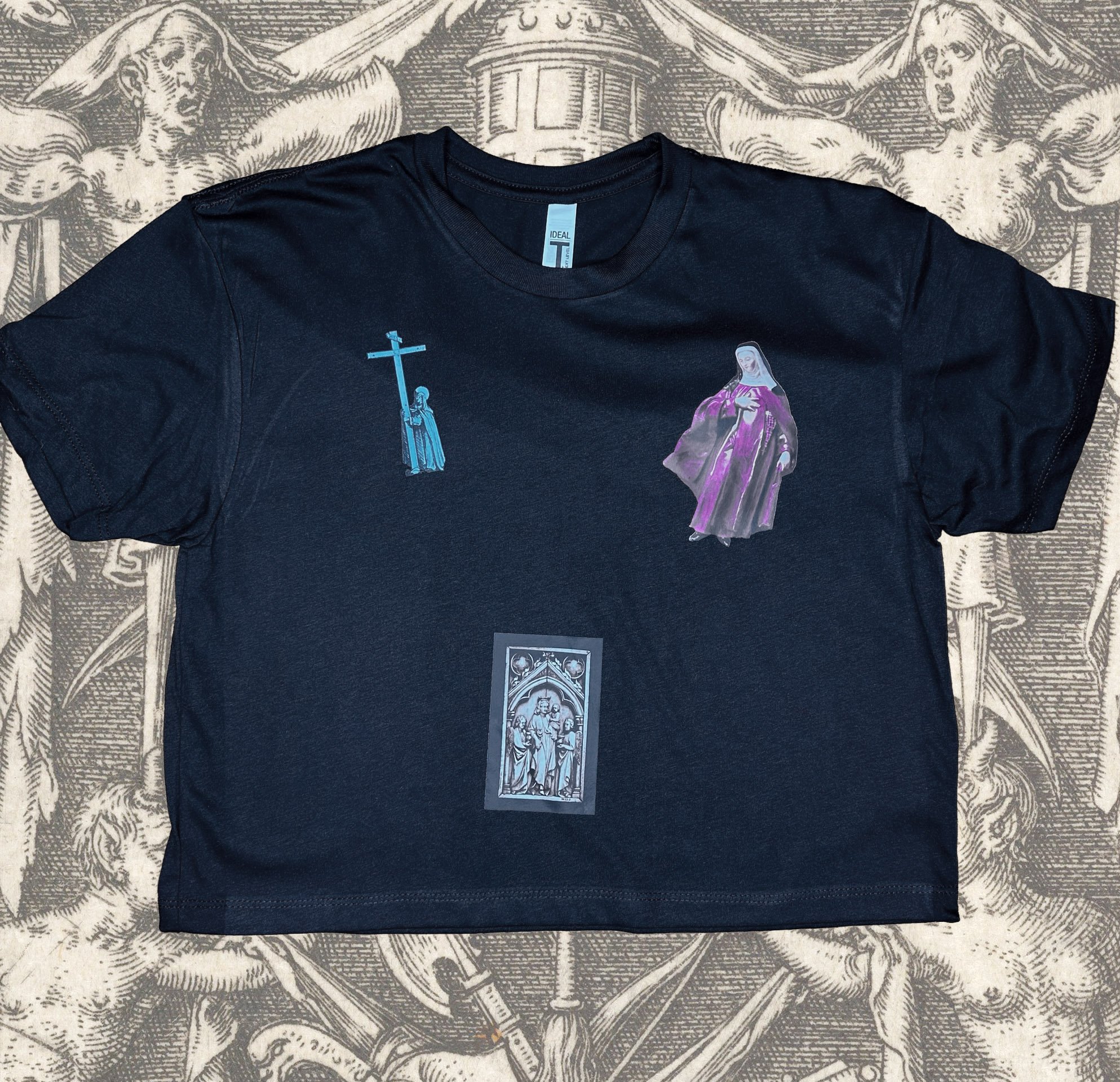 Each cropped shirt is completely one of a kind and printed by hand in our studio. From design to application, using carefully sourced materials and high quality blanks. This price reflects the time, skill, and intention behind an original, wearable artwork- not mass-produced merchandise.