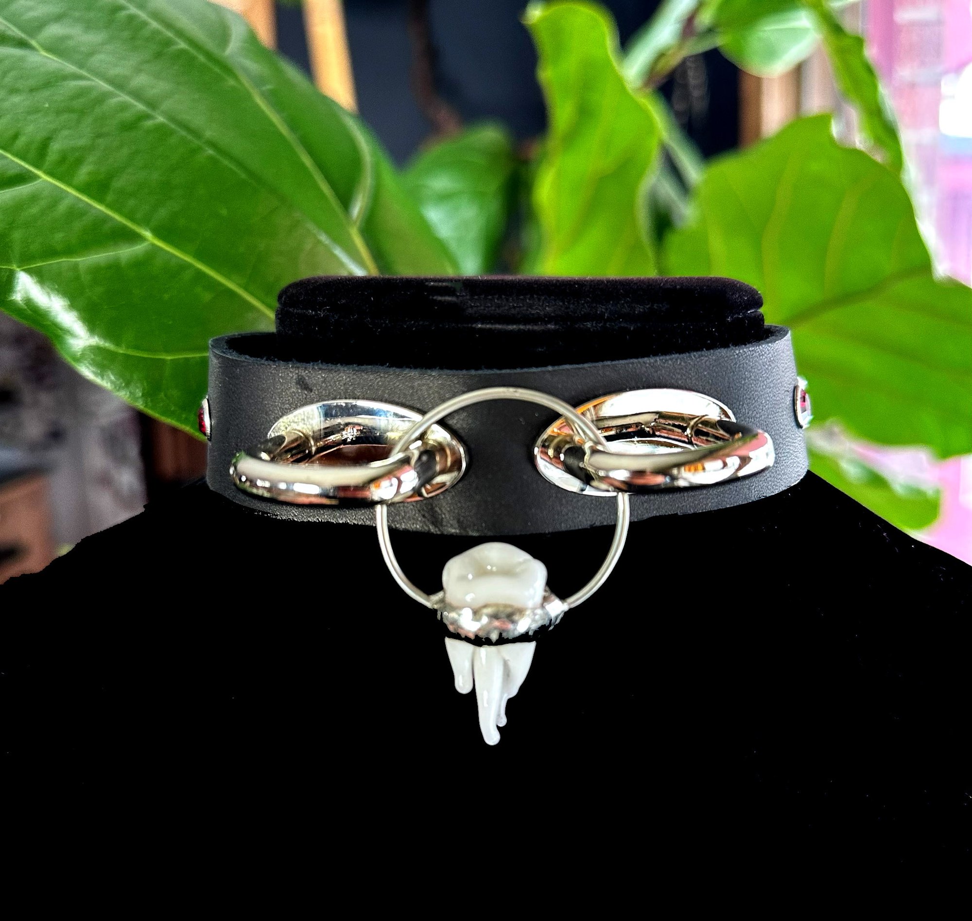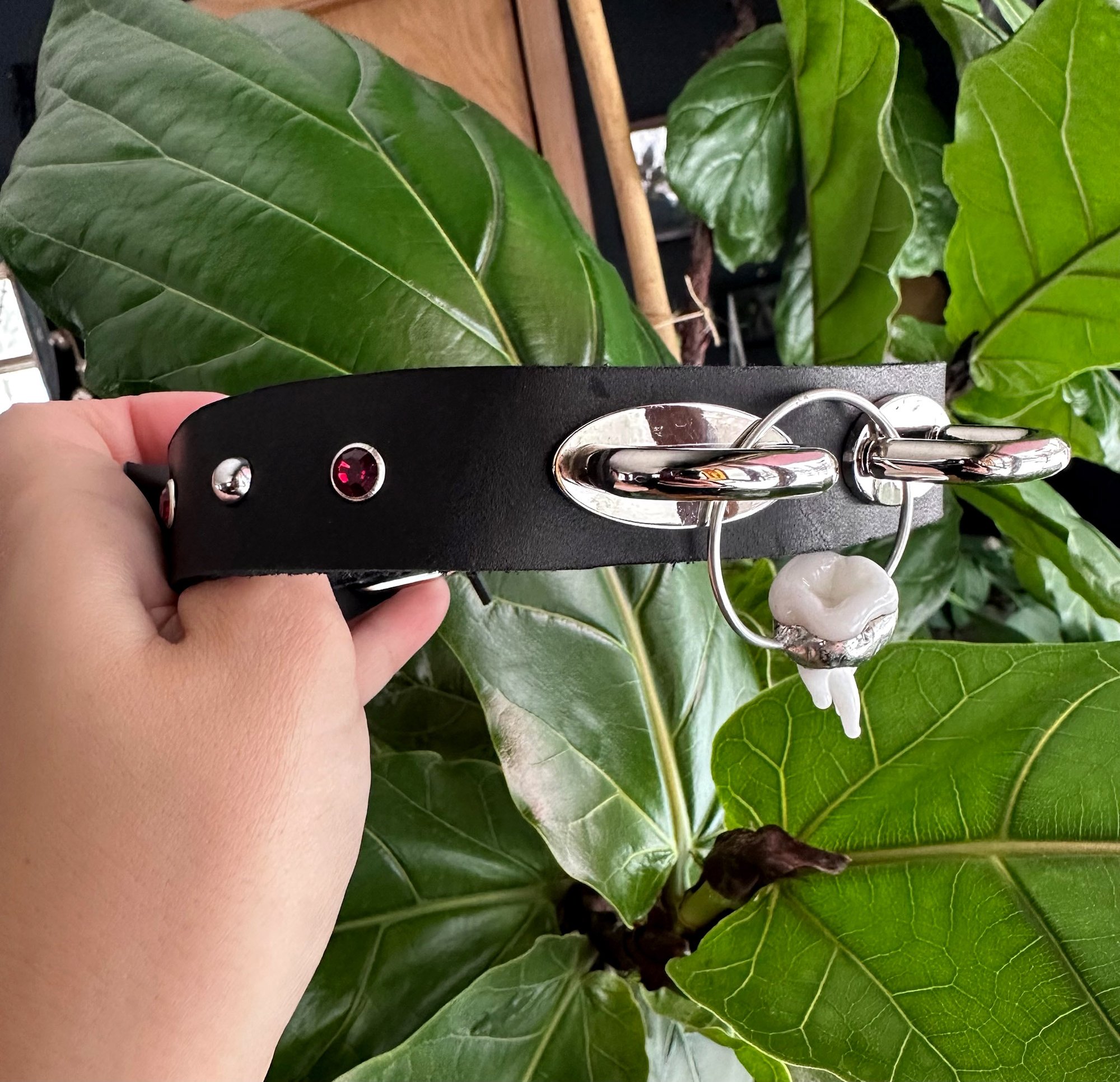 This limited-edition choker is a collaboration with Minneapolis artist Samael Leopold Sullivan. It features a flame-worked borosilicate glass tooth, finished with a lead-free, soft-soldered loop, entirely handmade by Sam.