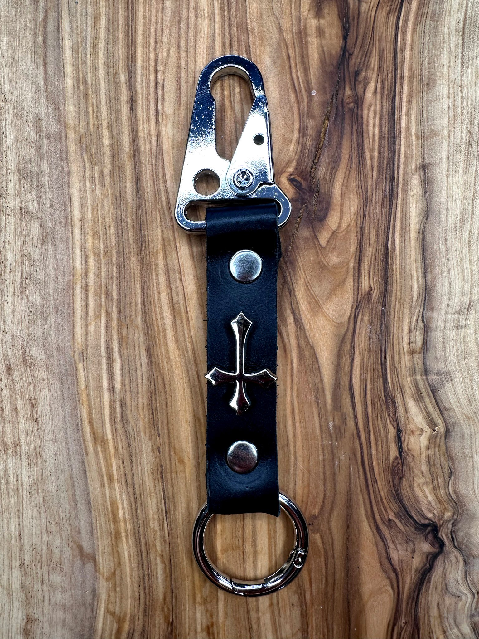 • Metal lever snap buckle that lays flat against belt loops or bags.