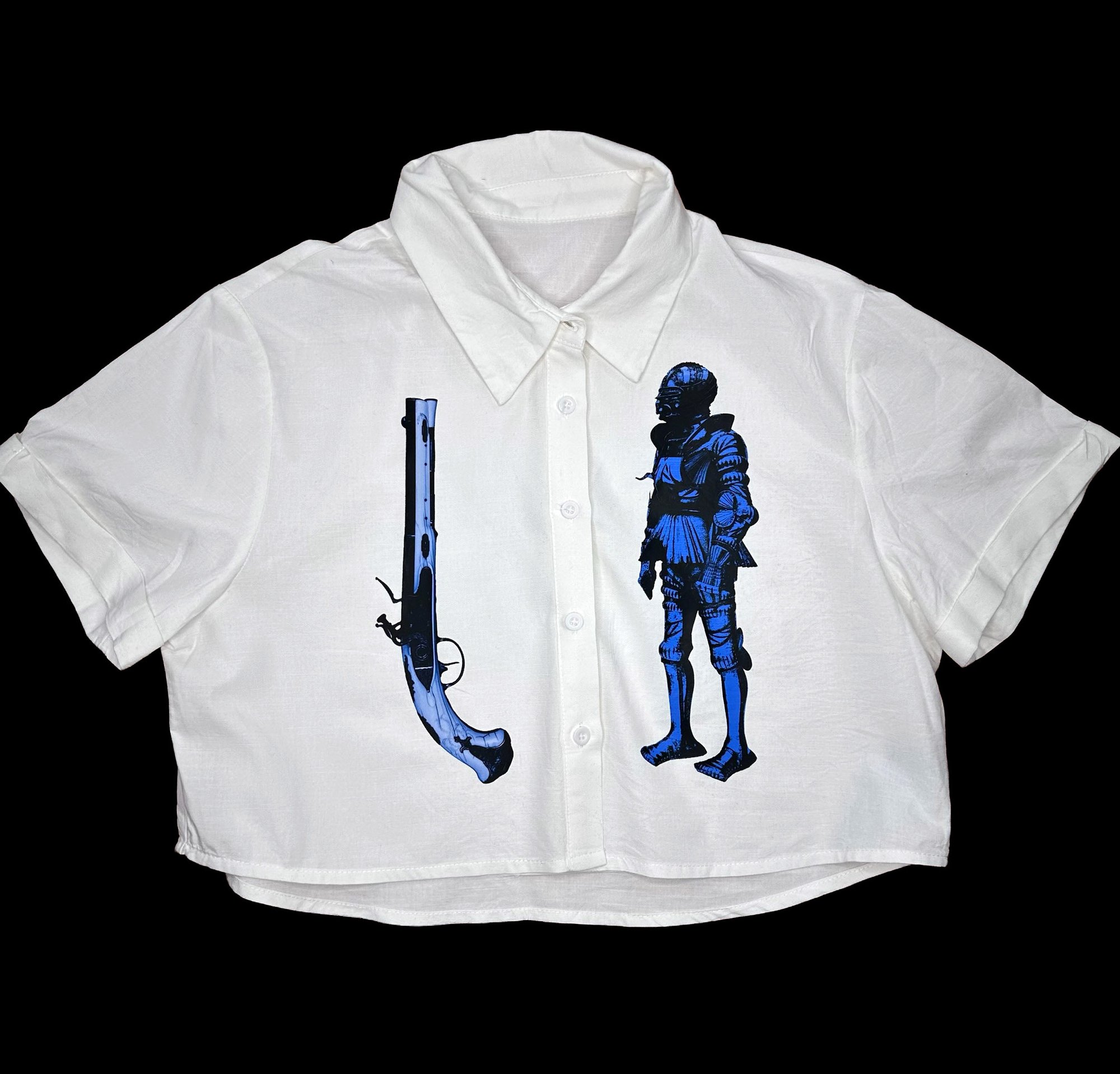 Medieval Cropped White Button Down- Large 1