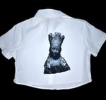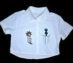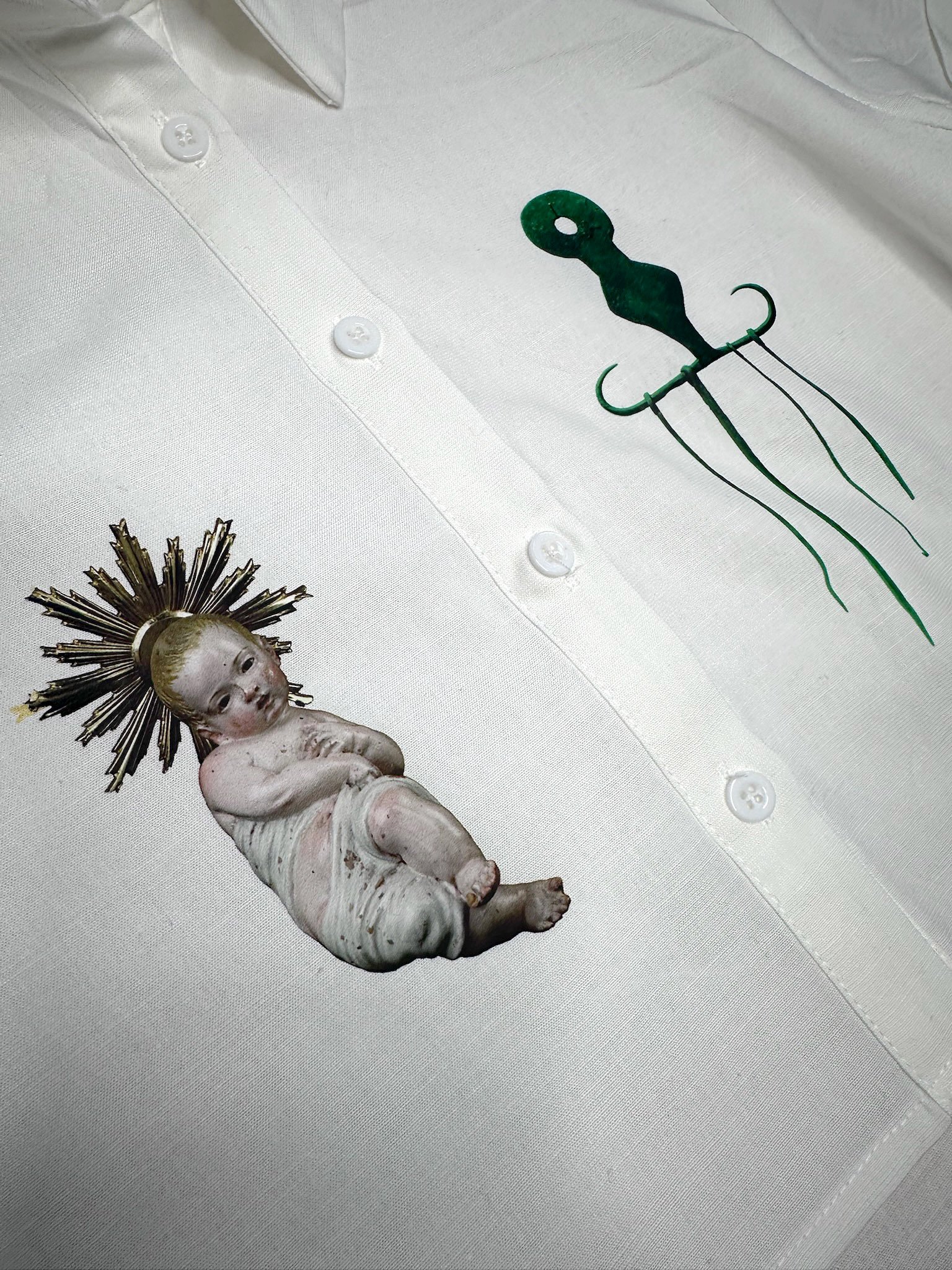 Each shirt is completely one of a kind and printed by hand in our studio. From design to application, using high quality heat transfers and sourced shirt blanks. This price reflects the time, skill, and intention behind an original, wearable artwork- not mass-produced merchandise.