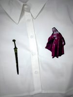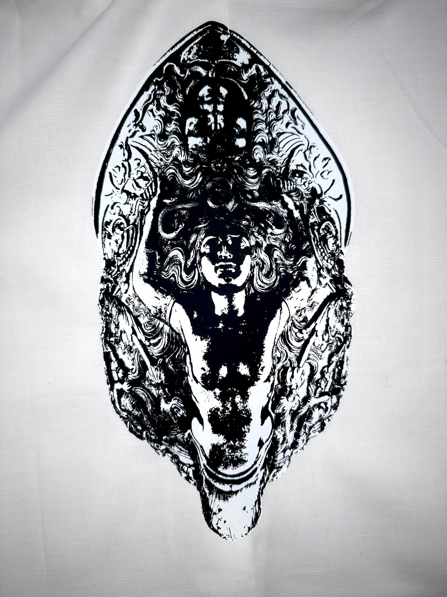 Each shirt is completely one of a kind and printed by hand in our studio. From design to application, using high quality heat transfers and sourced shirt blanks. This price reflects the time, skill, and intention behind an original, wearable artwork- not mass-produced merchandise.