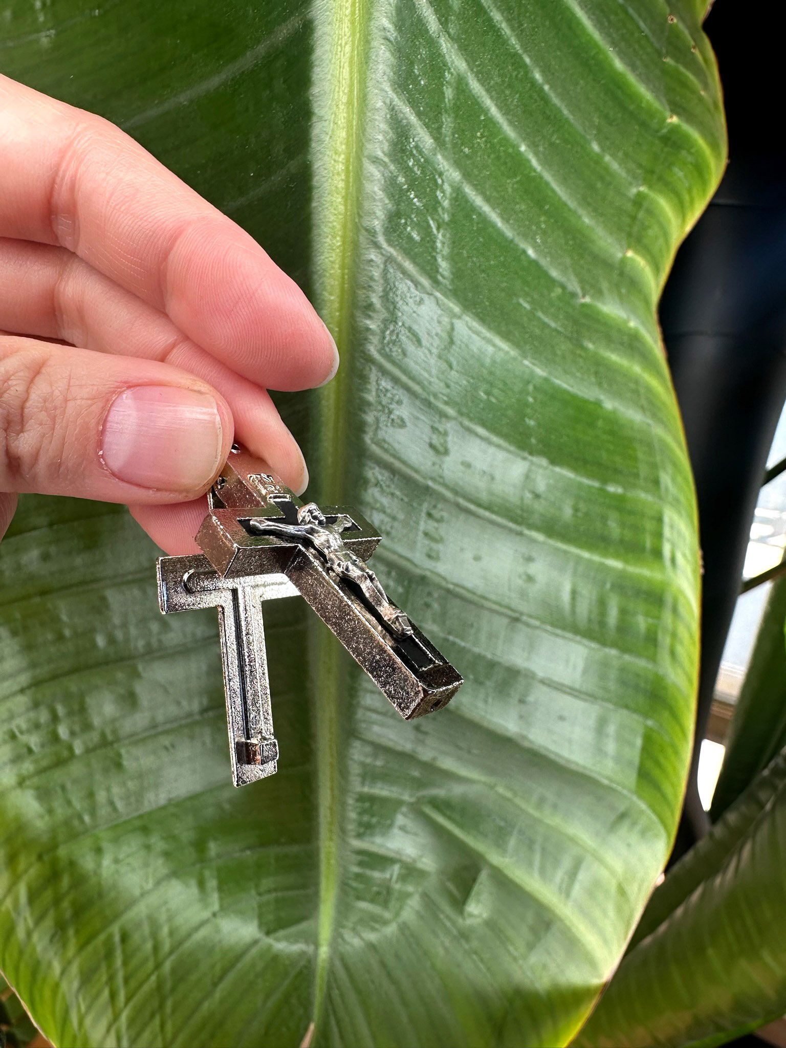 The Reliquary Crucifix is a traditional catholic item, often filled with soil from the Holy Site visited. This is an Italian crucifix and has a screw in the base that opens so you can include your personal item in it. Fill it with blood from your enemies, tears from a faded memory, or soil from Bela Lugosi’s grave.